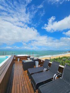 - Conforto na praia: 2 guarda-sóis e 12 cadeiras de praia exclusivas para seu uso.